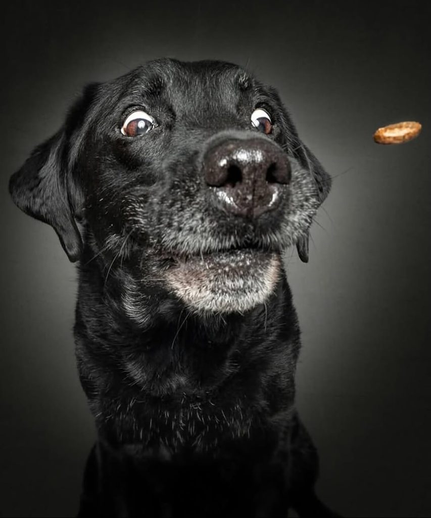 Sometimes the simplest idea can turn into something magical, and that’s exactly what happened for German photographer Christian Vieler. Back in 2013, he wasn’t trying to start a global phenomenon. He was simply testing out a new portable flash in his living room with his Labrador, Lotte. To keep her engaged, he tossed her a treat, pressed the shutter at just the right moment, and what he got was nothing short of hilarious — a frozen frame of pure emotion, a face caught between excitement, focus, and a little bit of chaos. That one shot sparked what would later become one of the most beloved photo series on the internet: “Dogs Catching Treats.”