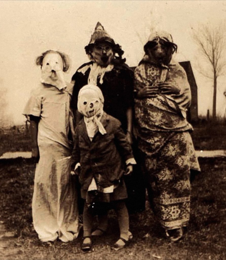 When most of us think about Halloween today, we picture kids running from house to house in bright superhero outfits, princess dresses, or neatly packaged costumes picked up from a store. There are pumpkins glowing on porches, plastic skeletons rattling in the wind, and candy overflowing in plastic buckets. It feels lighthearted, colorful, and family-friendly. But if you take a step back in time and look at what Halloween looked like a century ago, the entire holiday feels almost unrecognizable. The costumes weren’t glossy, polished, or cute. They were eerie, rough, and unsettling in ways that modern costumes could never be.