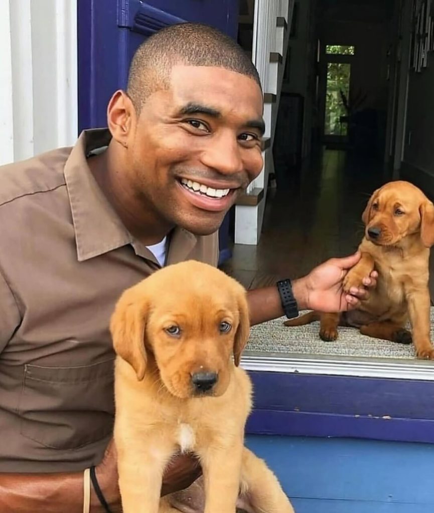 I think about how often delivery drivers go unnoticed. They’re part of the background of our daily routines, people we rely on but don’t always take the time to really see. Yet here, one driver has become unforgettable because of the way he chose to engage with the world around him. His smile, his willingness to kneel down and meet the dogs on their level, his openness to let those brief encounters matter—all of that turns an everyday job into something special. It’s not about packages anymore. It’s about moments. And moments are what we remember long after the boxes have been opened.