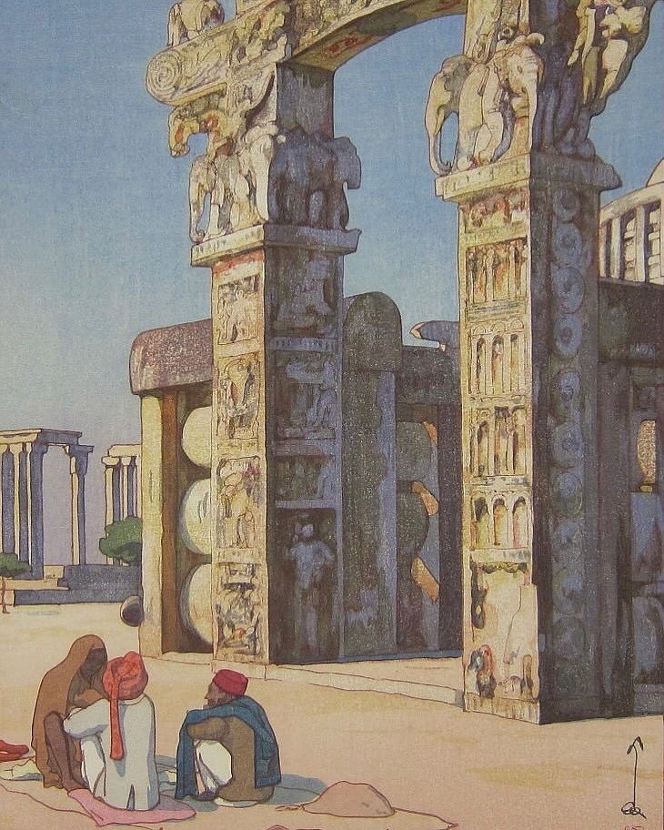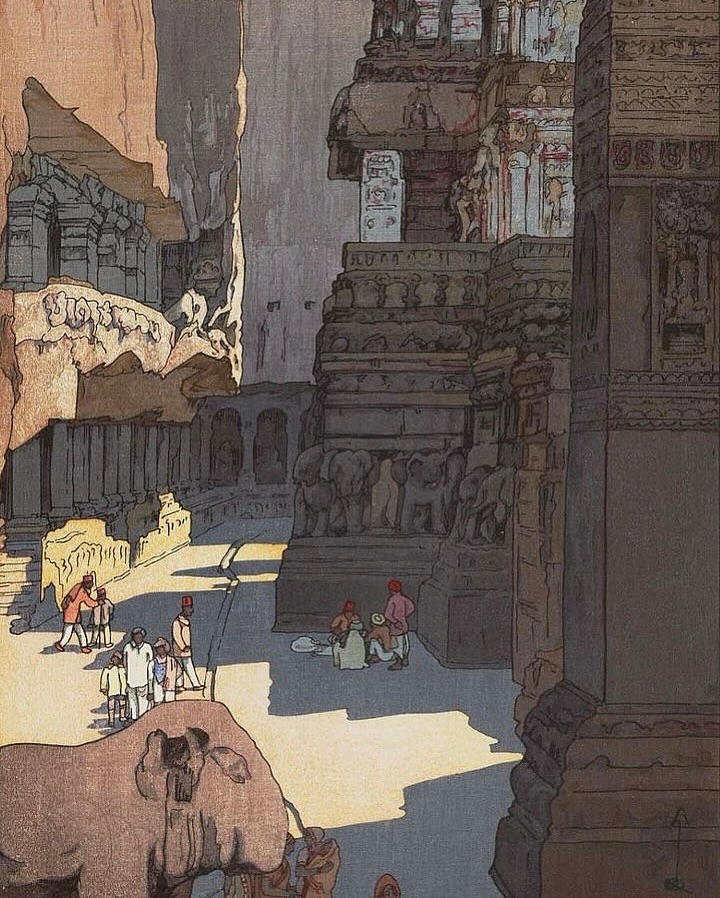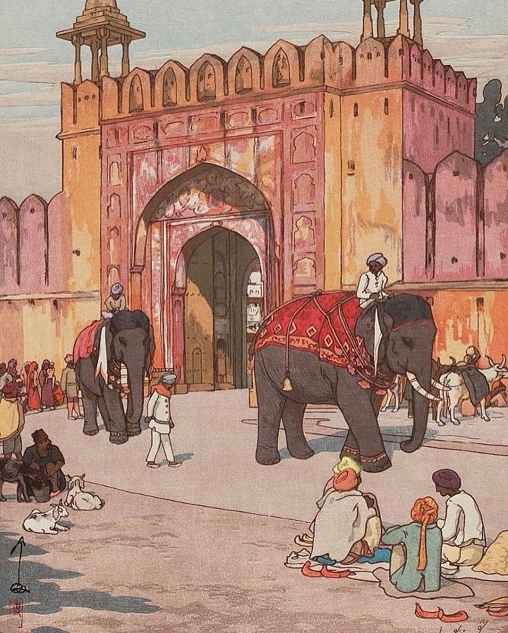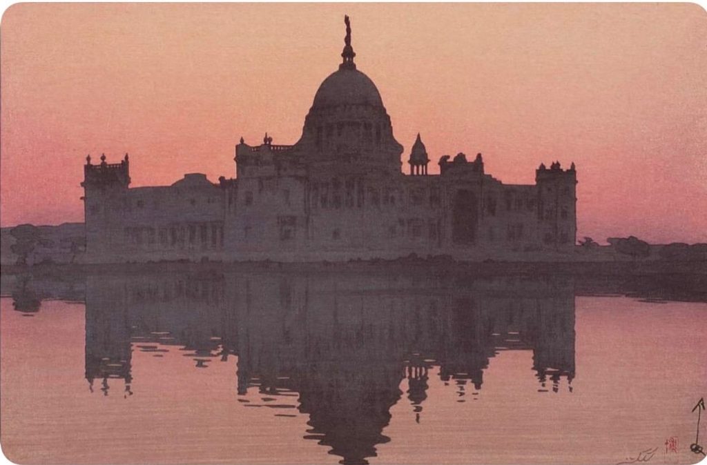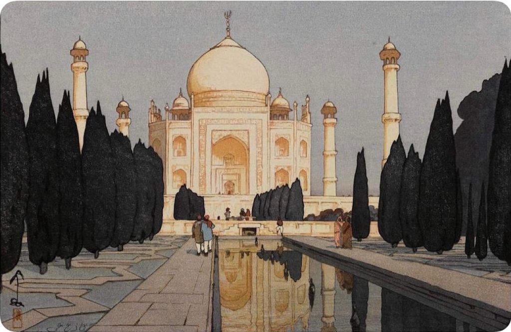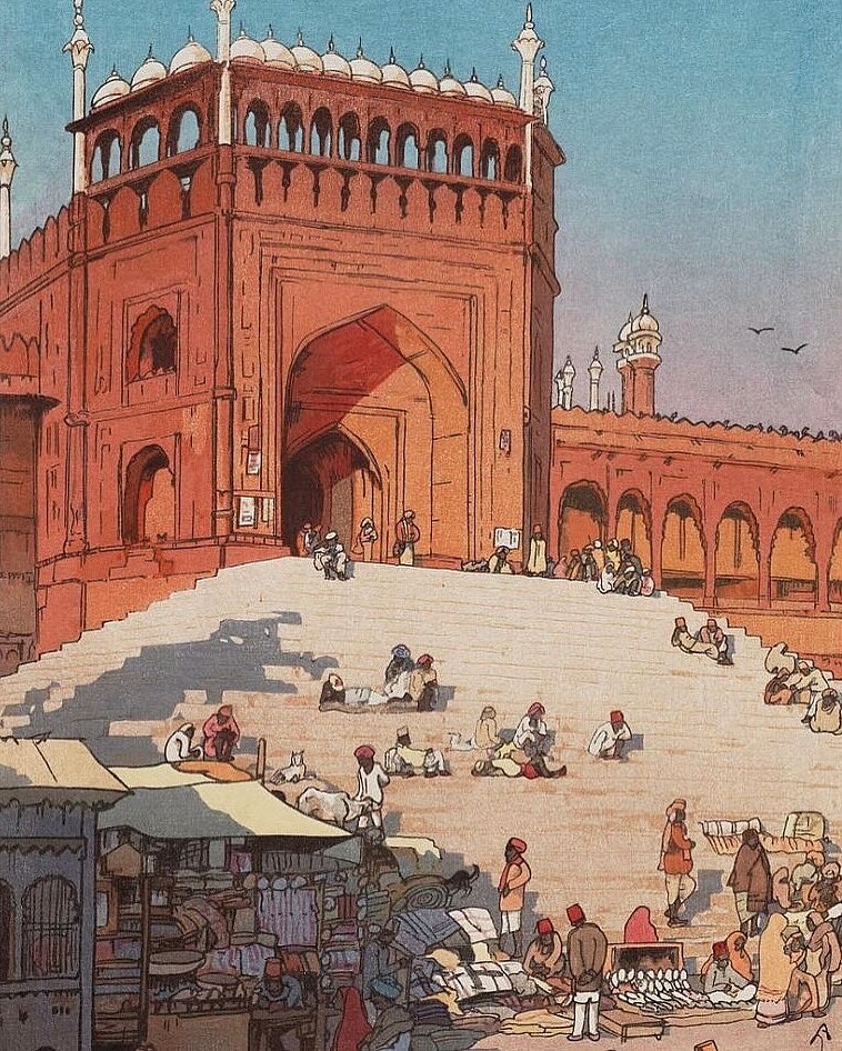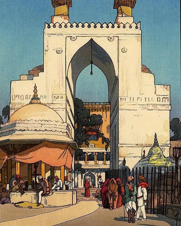 Yoshida, already celebrated in Japan for blending traditional woodblock methods with Western-style realism, believed in painting what he saw with his own eyes. That’s why his four-month journey across India mattered so much. He didn’t just copy photographs or rely on secondhand descriptions—he walked the streets, sketched by temples, stood before monuments, and watched the light change hour by hour. India, with its architecture, its rituals, and its deep, dazzling colors, became part of his artistic DNA.