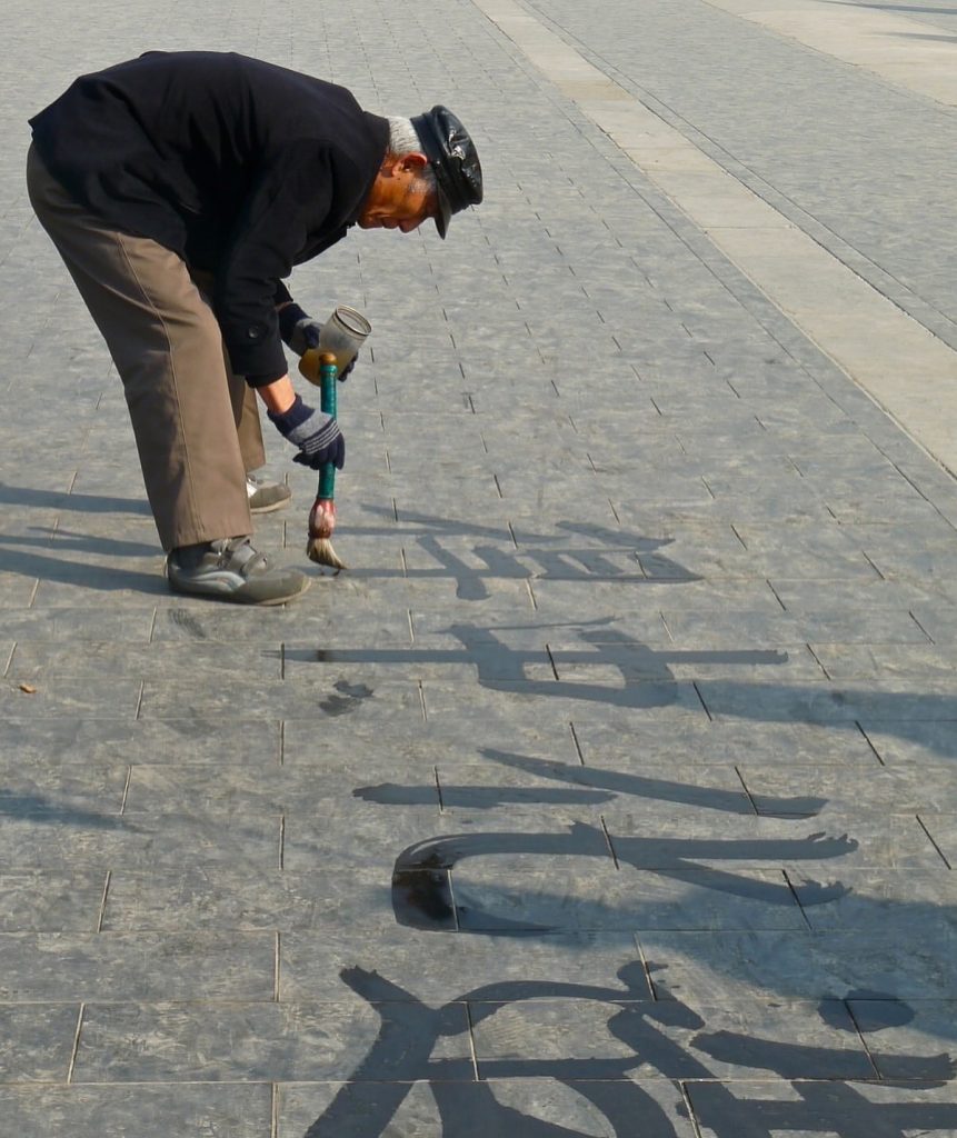 On a quiet morning in a park in Beijing, you might see an elderly man leaning slightly forward, brush in hand, tracing delicate Chinese characters across the pavement. His brush isn’t dipped in ink but in water, and the strokes he creates glisten for only a few moments before slowly fading away. This practice, known as ground calligraphy or dìshū, is a modern cultural tradition in China, and it has become both a form of art and a way of meditative expression. At first glance, it looks like someone simply writing for fun on the sidewalk, but when you pause to watch, the deeper meaning begins to reveal itself.